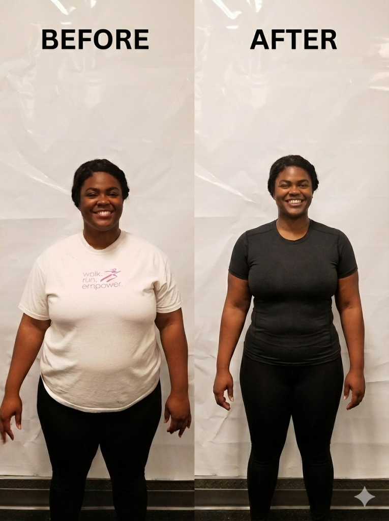 - End: 140 lbs, 18–20% body fat
